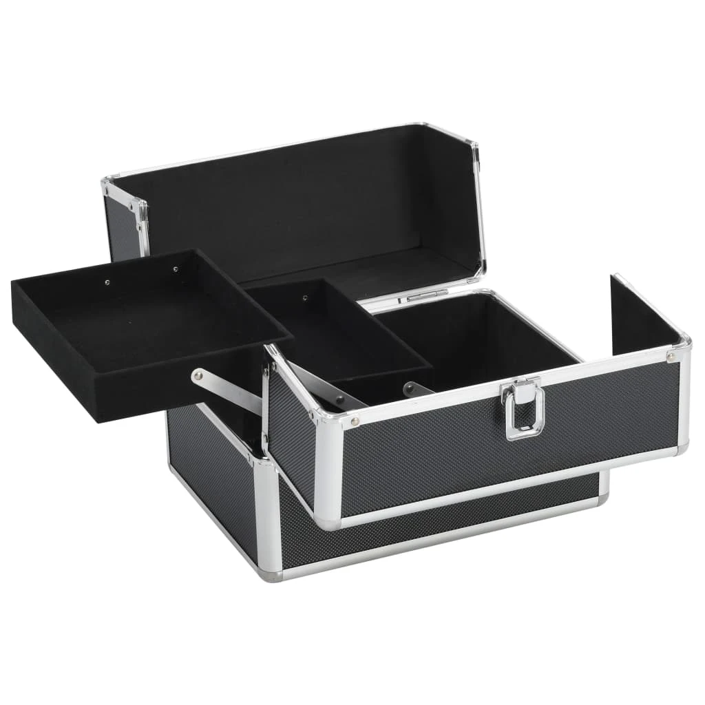 vidaXL kosmētikas koferis, 37x24x35 cm, alumīnijs, melns