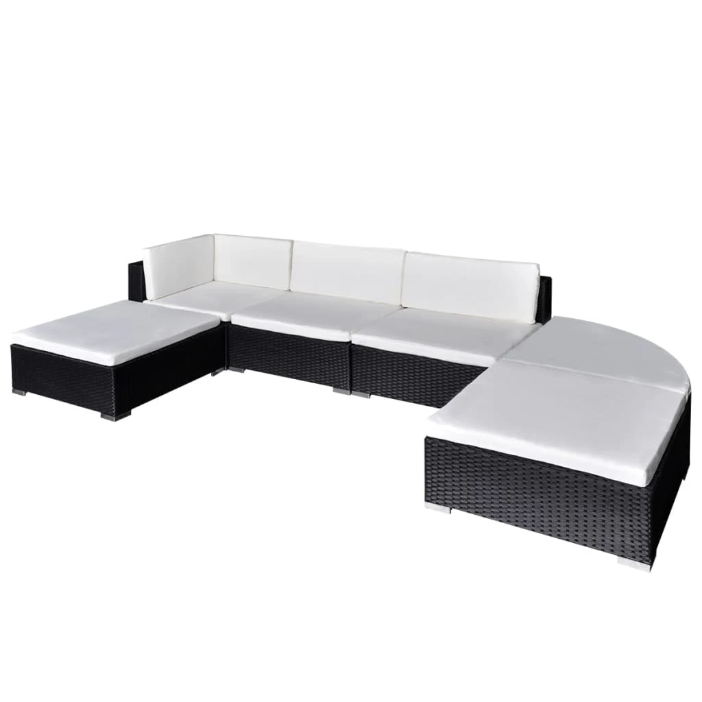 vidaXL 6-daļīgs dārza atpūtas mēbeļu komplekts ar matračiem, PE, melns