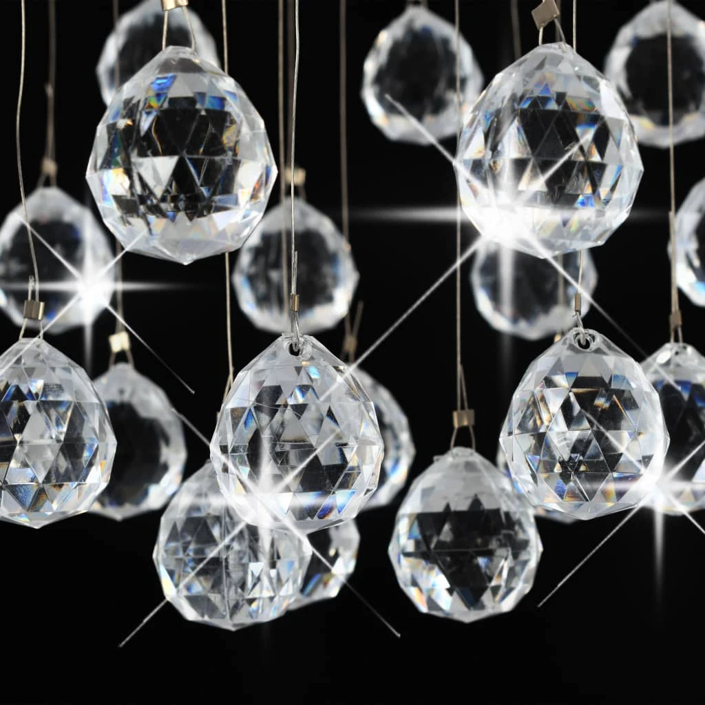 Šī ekstravagantā, mūsdienīgā dizaina griestu lampa ar mirdzošām kristāla pērlēm izteiksmīgi papildinās jūsu mājas interjeru un piesaistīs uzmanību!