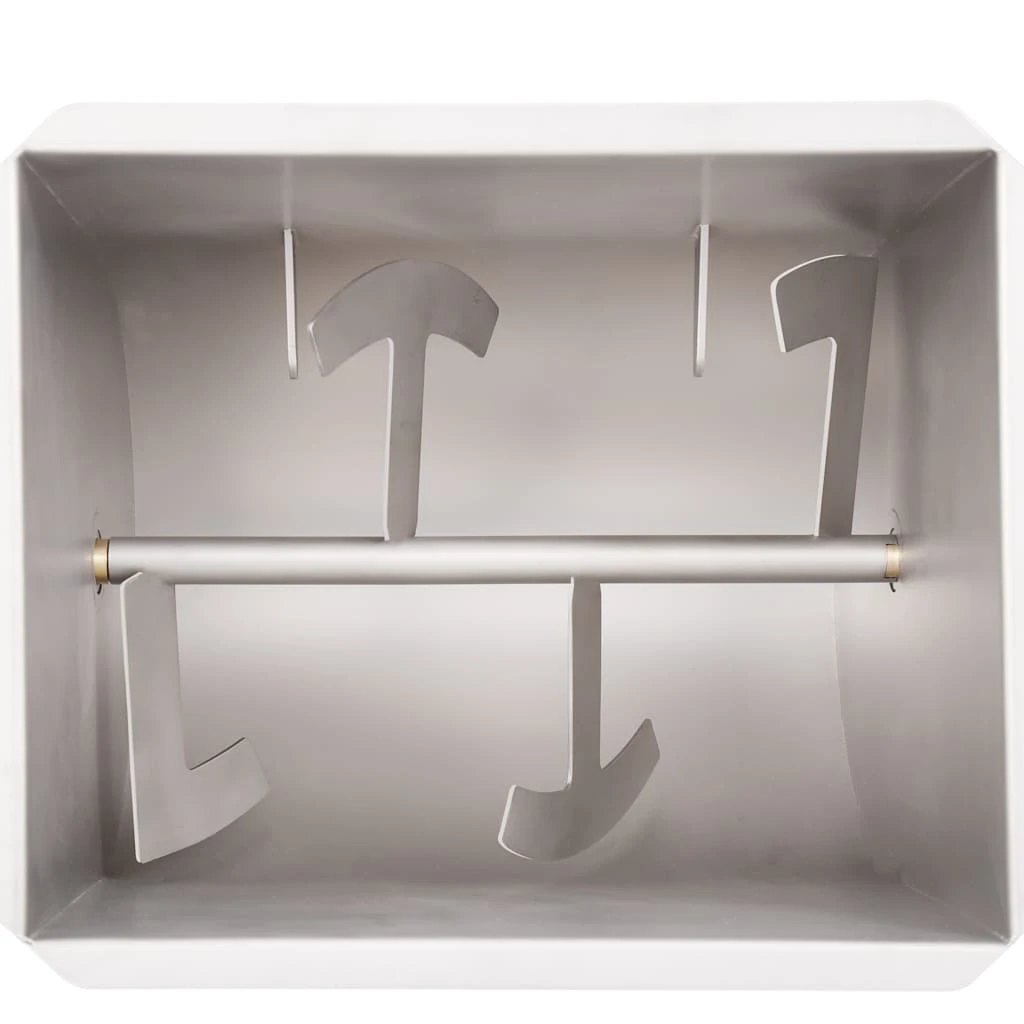 Šim jaudīgajam gaļas maisītājam ir 5 kg liela ietilpība. Tam ir asmens vārpsta ar 4 maisīšanas asmeņiem, kas vienmērīgi iejauc garšvielas visā gaļas maisījumā. Lielais kloķveida rokturis un caurspīdīgais plastmasas vāks ļauj jums vērot gaļas maisīšanos, nesmērējot rokas un pasargājot tās no asmeņiem. Gaļas maisītājam, kas izgatavots no pārtikas nerūsējošā tērauda, ir izturīga konstrukcija.