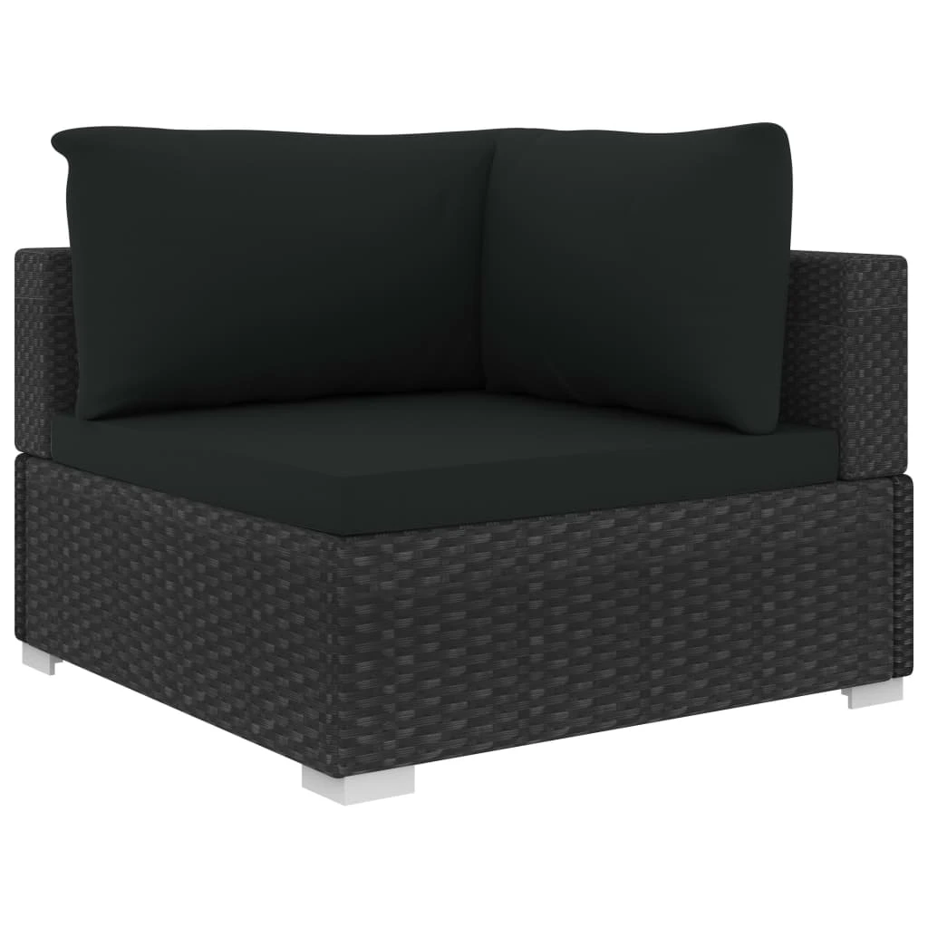 vidaXL 9-daļīgs dārza dīvāna komplekts, matrači, melna PE rotangpalma