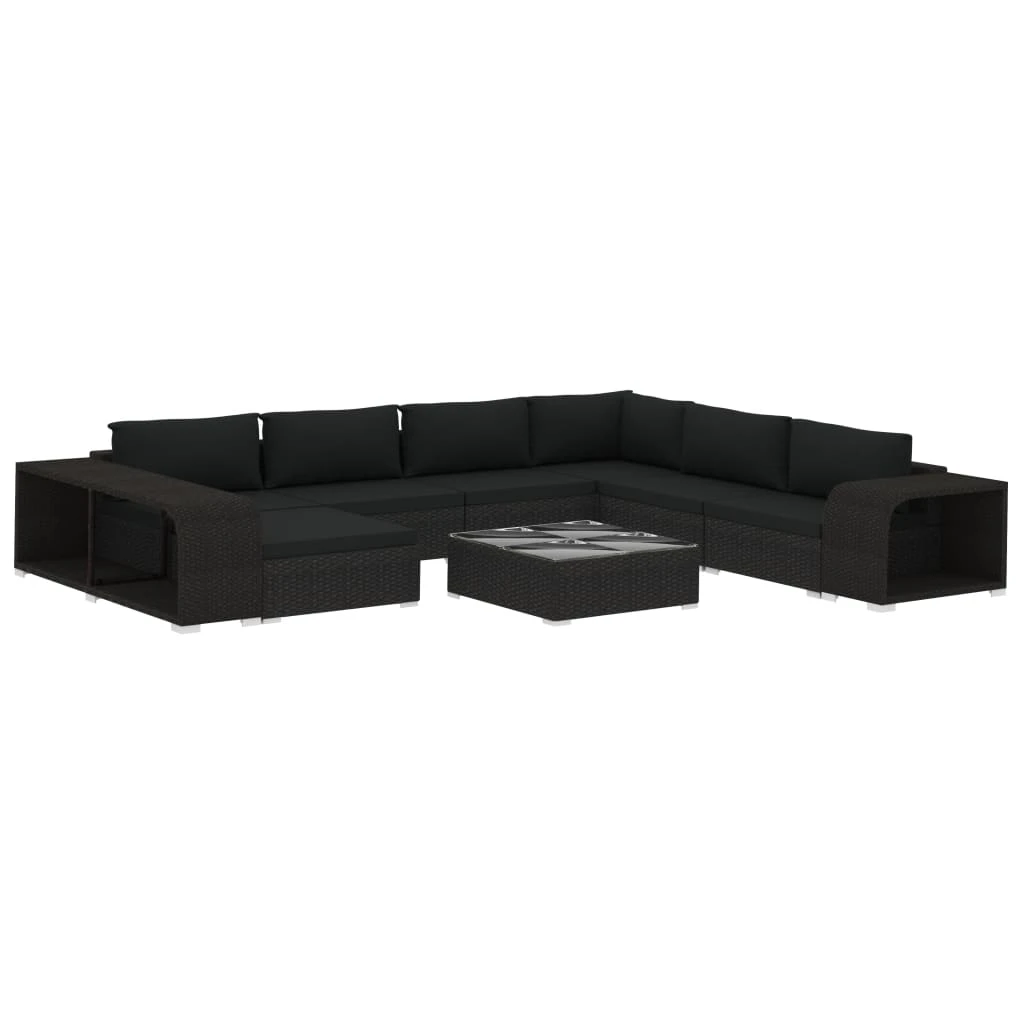 vidaXL 10-daļīgs dārza atpūtas mēbeļu komplekts ar matračiem, melns PE