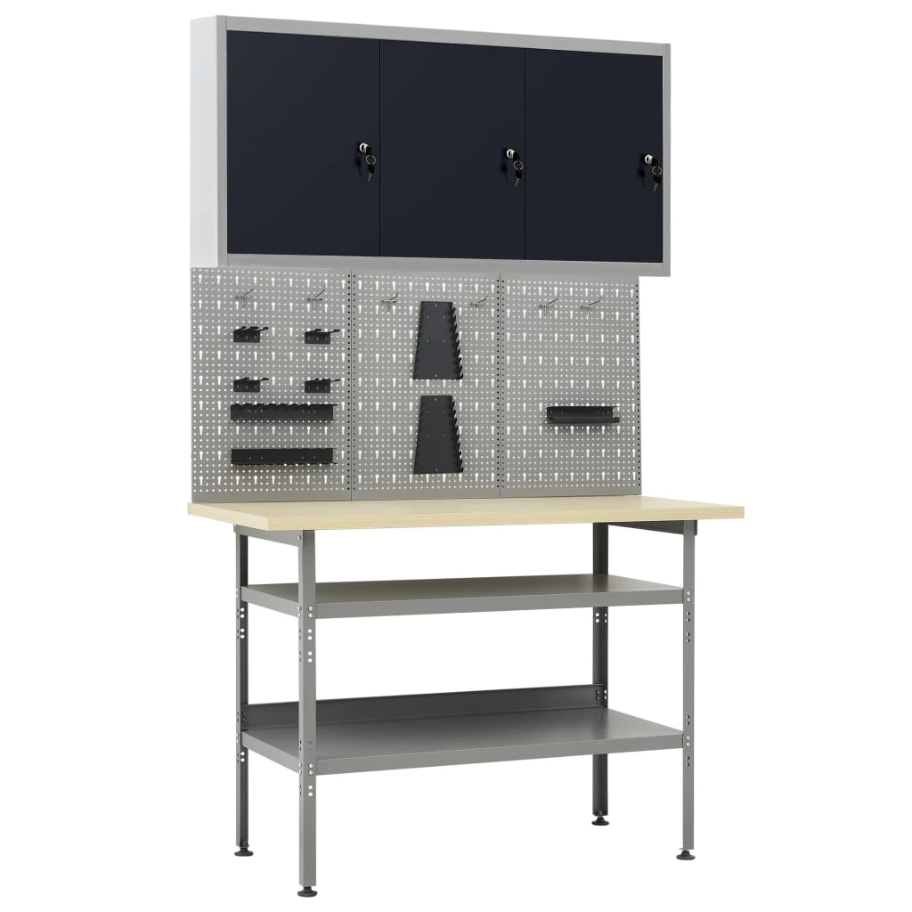 Šis komplekts sastāv no viena izturīga darbagalda, 3 sienas paneļiem un 1 sienas skapīša, kur jūs varēsiet ērti sakārtot dažādus instrumentus savā darbnīcā vai garāžā.