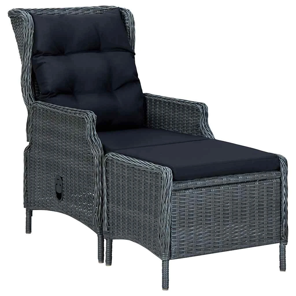 vidaXL atgāžams dārza krēsls ar kāju soliņu, pelēka PE rotangpalma