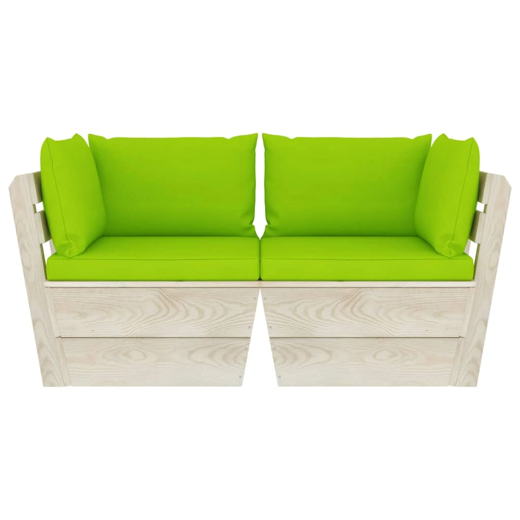 vidaXL 2-vietīgs dārza palešu dīvāns ar matračiem, egles koks