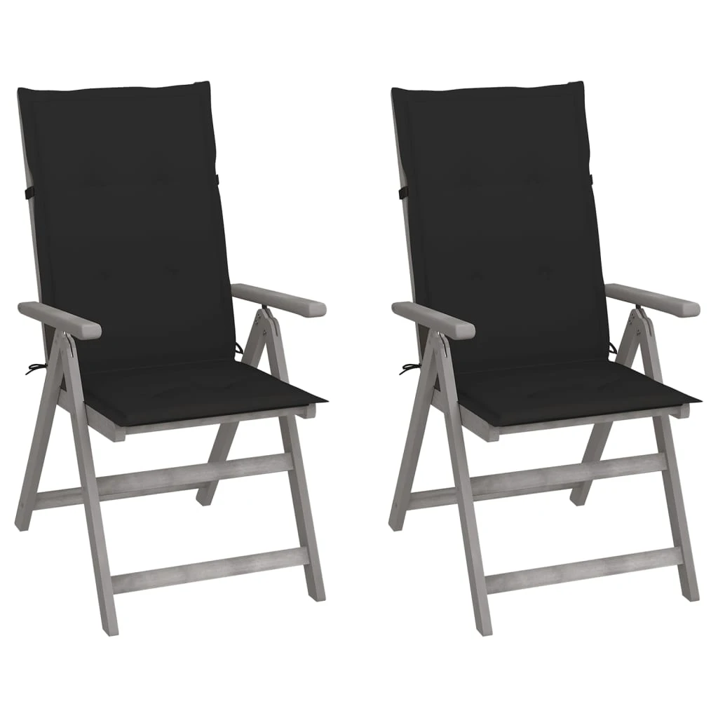 vidaXL atgāžami dārza krēsli ar matračiem, 2 gab., akācijas masīvkoks