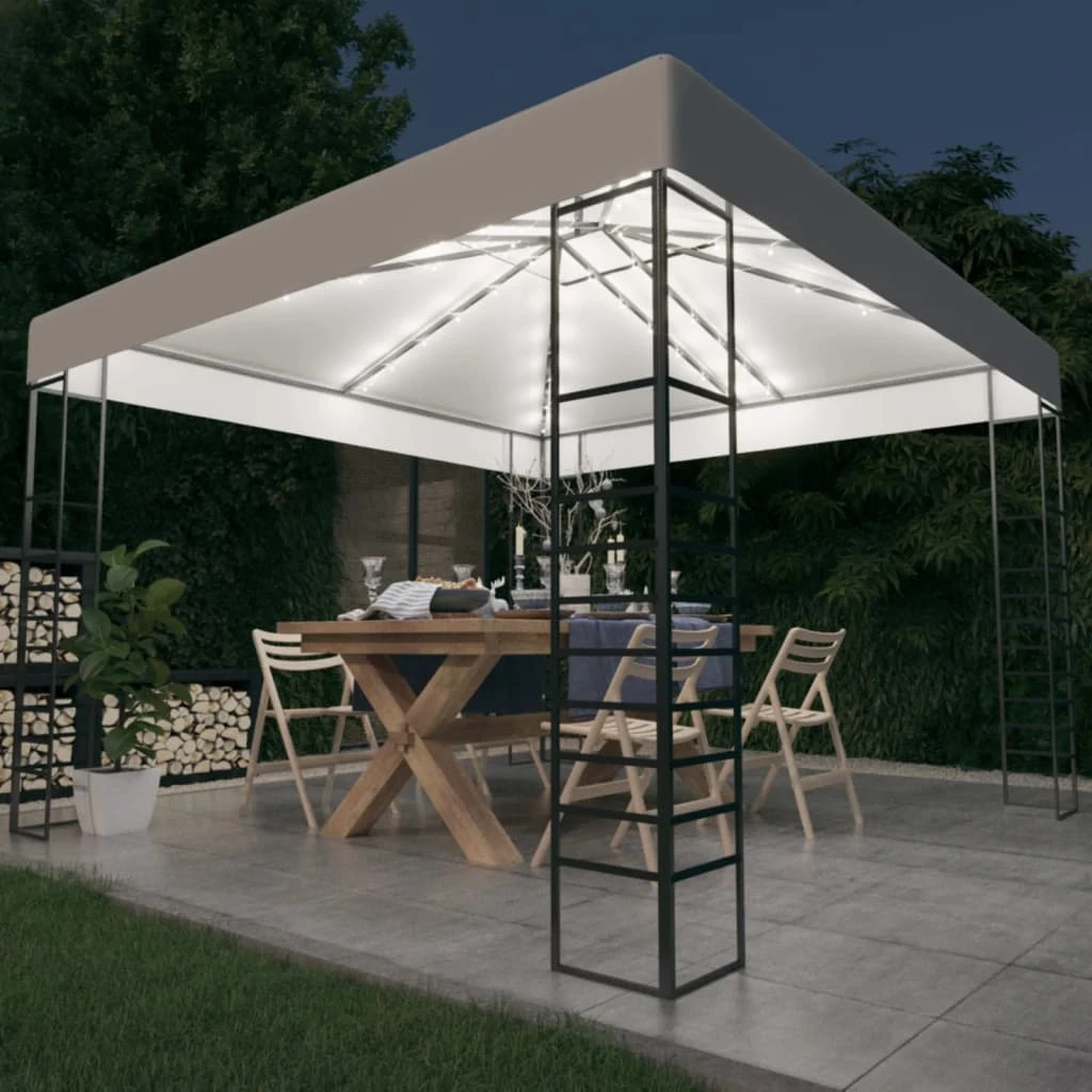 vidaXL dārza nojume ar LED lampiņu virtenēm, 3x3 m, balta