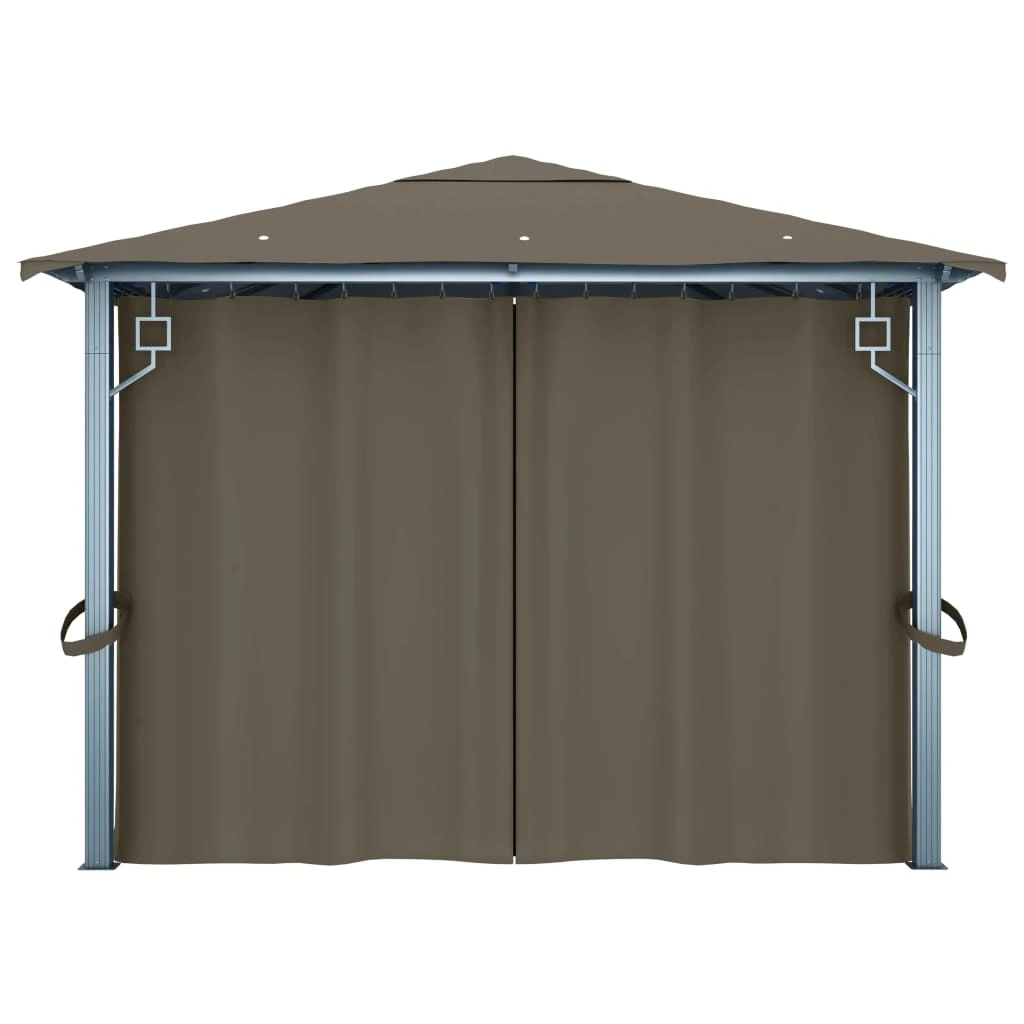 vidaXL dārza nojume ar aizkariem un LED lampiņām, 4x3 m, pelēkbrūna