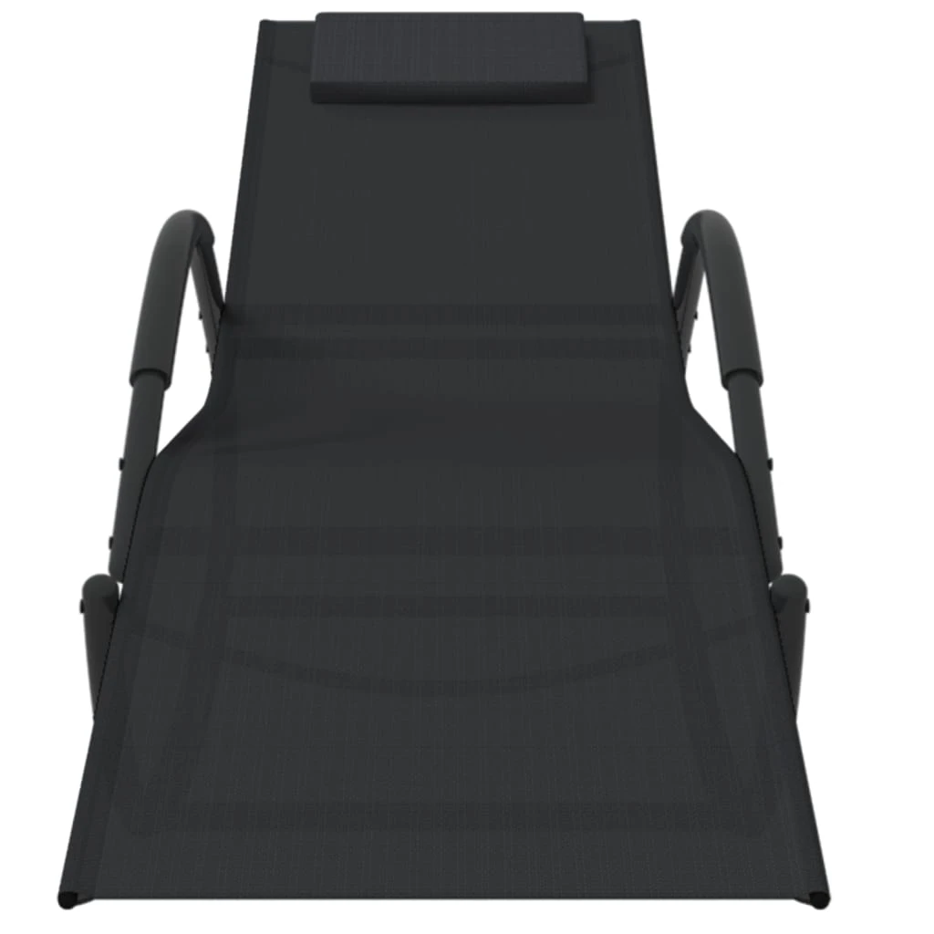 vidaXL sauļošanās šūpuļkrēsli, 2 gab., melni, tērauds un tekstilēns