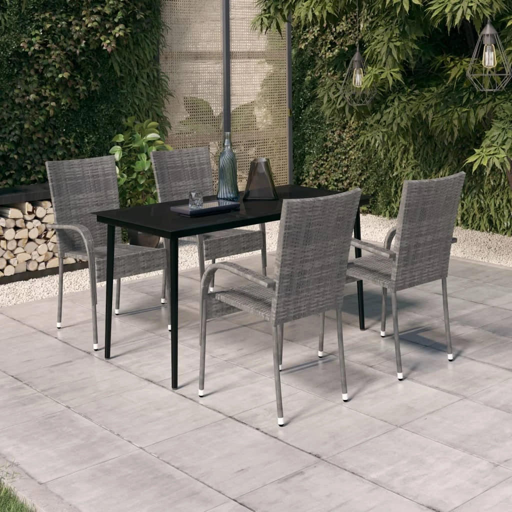 vidaXL 5-daļīgs dārza mēbeļu komplekts, pelēks, melns