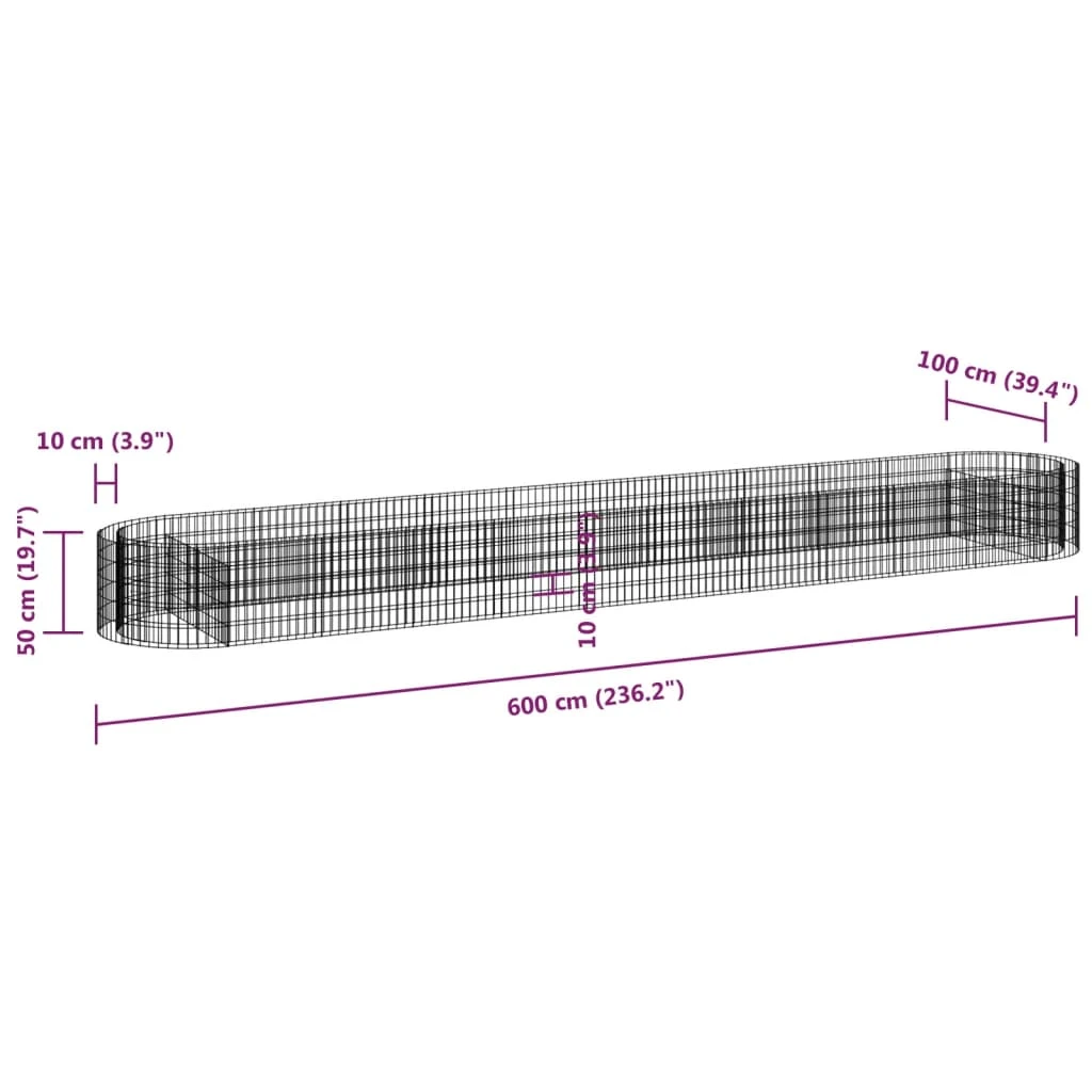 vidaXL gabions, augstā puķu kaste, cinkota dzelzs, 600x100x50 cm