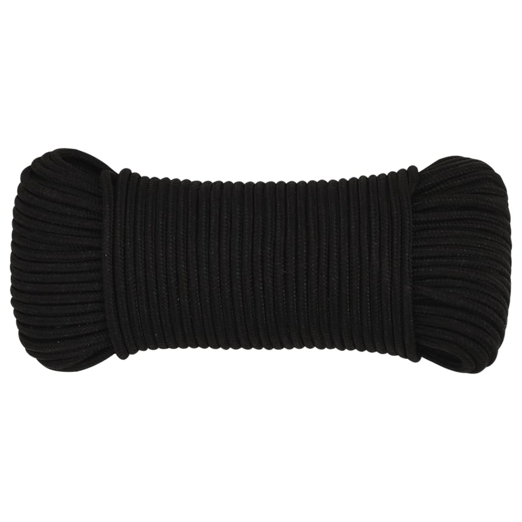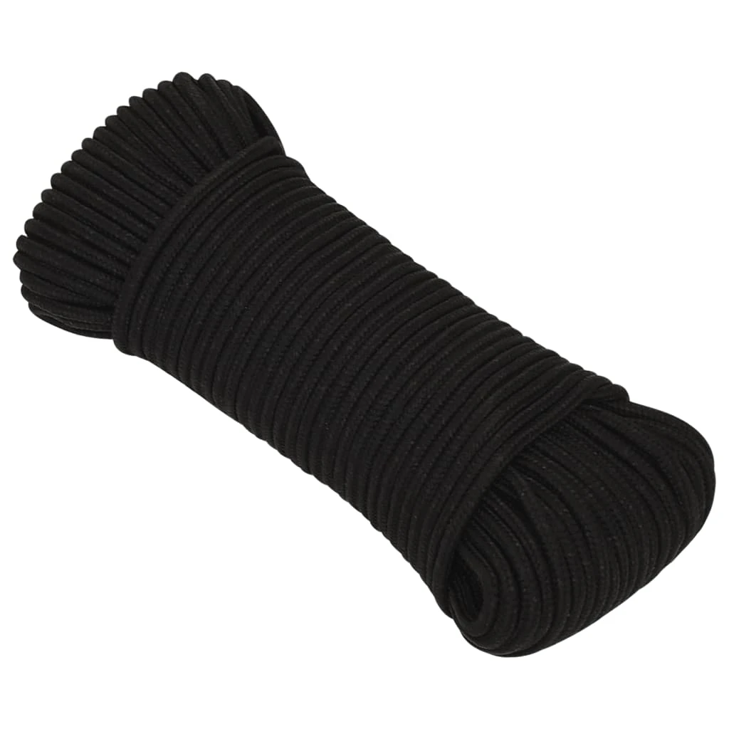 vidaXL darba virve, melna, 6 mm, 50 m, poliesters