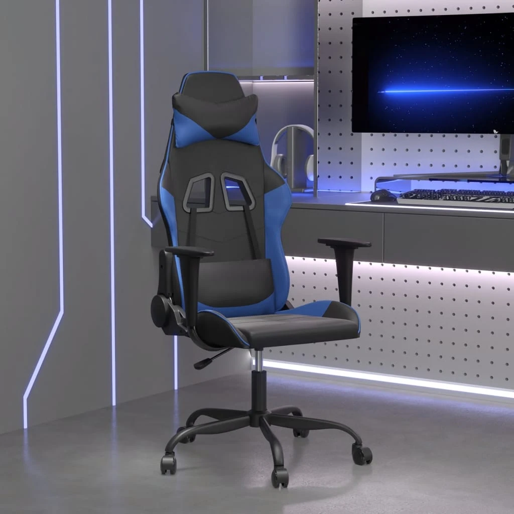 vidaXL masāžas datorspēļu krēsls, melna un zila mākslīgā āda