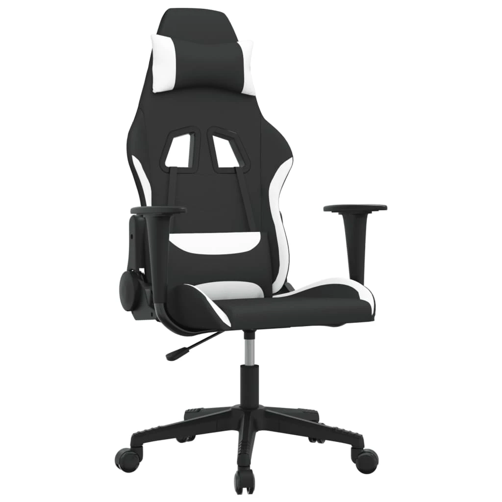 vidaXL masāžas datorspēļu krēsls, melns un balts audums