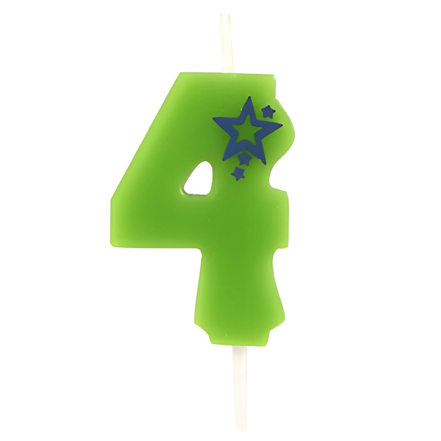 Zaļa dzimšanas dienas svecīte 4. Izgatavota no parafīna. Svecītes augstums ar kātu 6.8 cm, bez kāta 4.5 cm. Degšanas ilgums aptuveni 6 minūtes.
