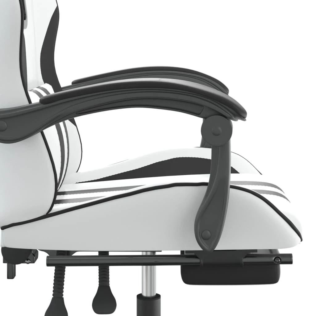 vidaXL datorspēļu krēsls ar kāju balstu, balta un melna mākslīgā āda
