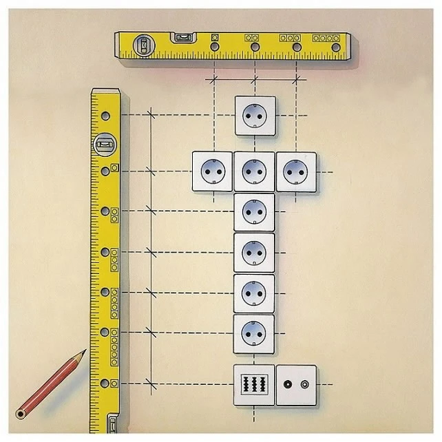 Īpaši pielāgots elektriķu vajadzībām — Type 70 Electric līmeņrādis ar vieglu alumīnija profilu un integrētām marķēšanas atverēm rozetēm un slēdžiem (71 mm pēc DIN 49075), ļauj mērīt un marķēt vienā solī, 120 cm garums ar papildu augstuma atzīmēm (virtuves darba virsmas rozešu 1150 mm, slēdžu 1050 mm, rozešu 300 mm), neslīdoši gala vāciņi drošai fiksācijai, pārklāta mērvirsma jutīgu materiālu aizsardzībai, gludas pulverkrāsotas malas vieglai tīrīšanai, STABILA uzstādīšanas tehnoloģija ilgtermiņa precizitātei, mērījumu precizitāte ±0.50 mm/m, aprīkojums: 1 horizontālais līmeņburbulis, 1 vertikālais līmeņburbulis, 1 pārklāta mērvirsma un marķēšanas atveres.