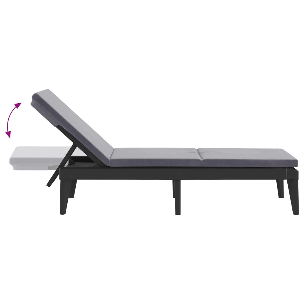 vidaXL sauļošanās zvilnis ar jumtiņu un galdu, melna PE rotangpalma