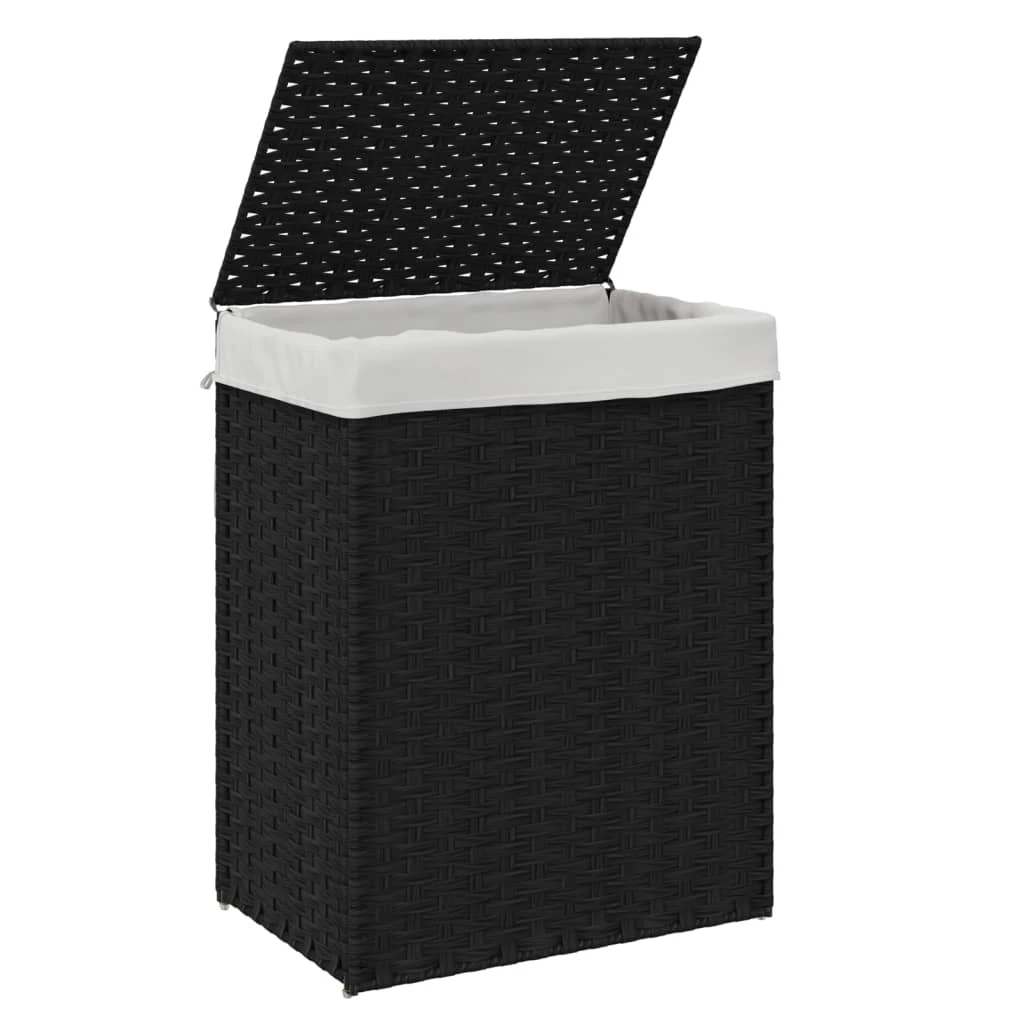 vidaXL veļas grozs ar vāku, melns, 46x33x60 cm, mākslīgā rotangpalma