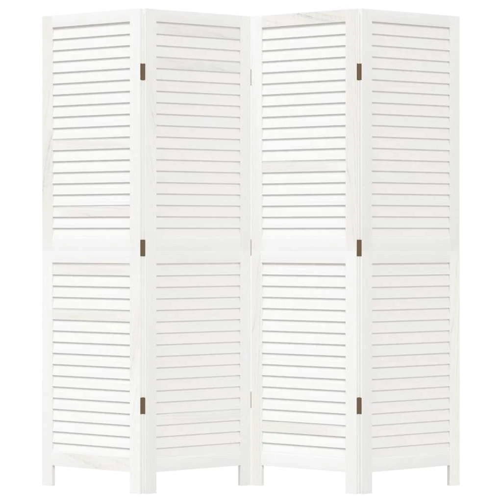 vidaXL 4-paneļu istabas aizslietnis, balts, paulonijas masīvkoks