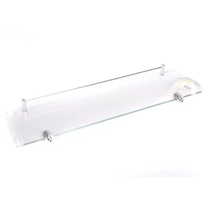 Stilīgs plaukts smaržu pudelītēm, roku krēmiem, juvelierizstrādājumiem, ķemmēm, otām, zobu birstes glāzēm un daudz kam citam. Ideāli piemērots stiprināšanai starp izlietni un spoguli. Ar hromētām margām priekšpusē, lai priekšmeti nenokristu. Stiprinās pie sienas ar skrūvēm (iekļautas komplektā). Caurspīdīga stikla pamatne, taisnstūra formā ar noapaļotiem stūriem. Izmērs 50 x 5.7 x 14 cm, margu augstums 4 cm, stikla biezums 0.5 cm, maksimālā slodze 3 kg.