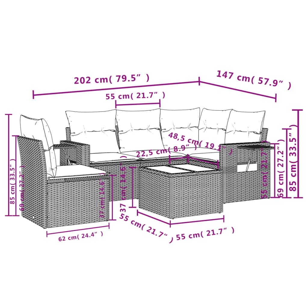 vidaXL Dārza dīvānu komplekts 7 pcs Bēša Poliūtu rotangpalma