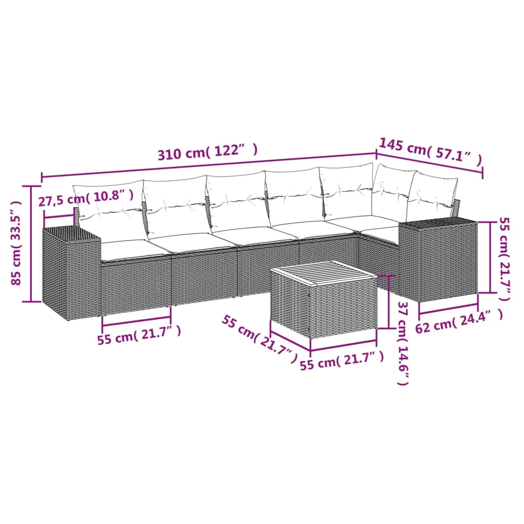 vidaXL dārza dīvāns ar matračiem, pelēka PE rotangpalma