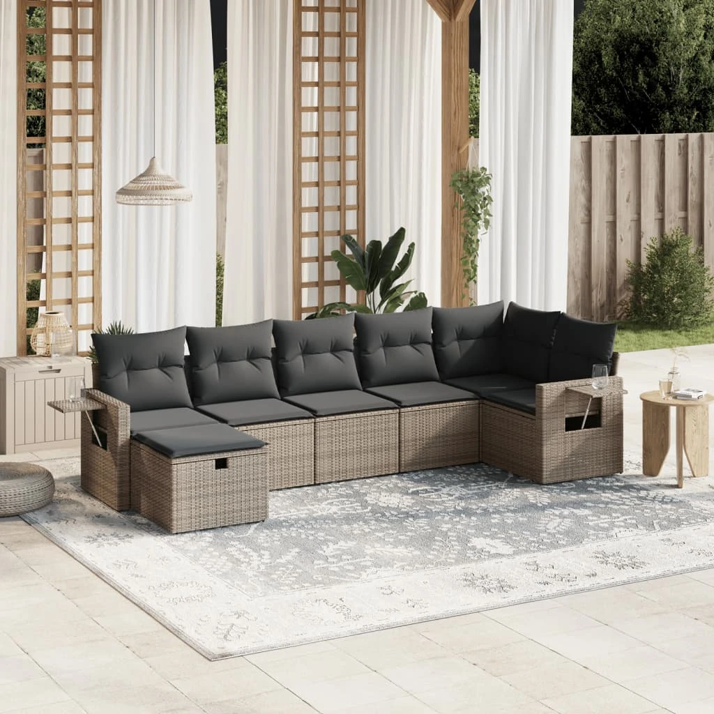 vidaXL 7-daļīgs dārza mēbeļu komplekts, matrači, pelēka PE rotangpalma