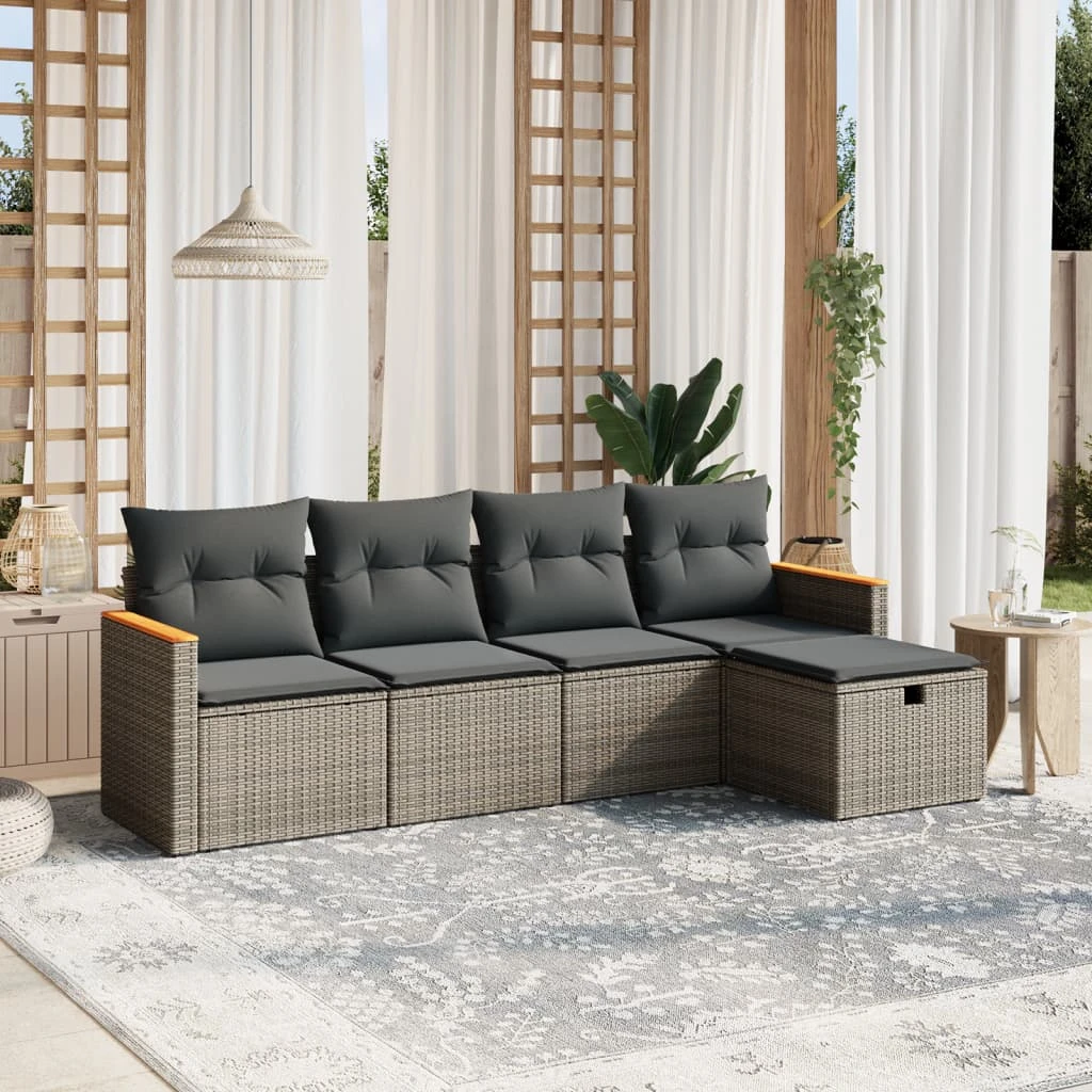 vidaXL 5-daļīgs dārza dīvāna komplekts ar matračiem, PE rotangpalma