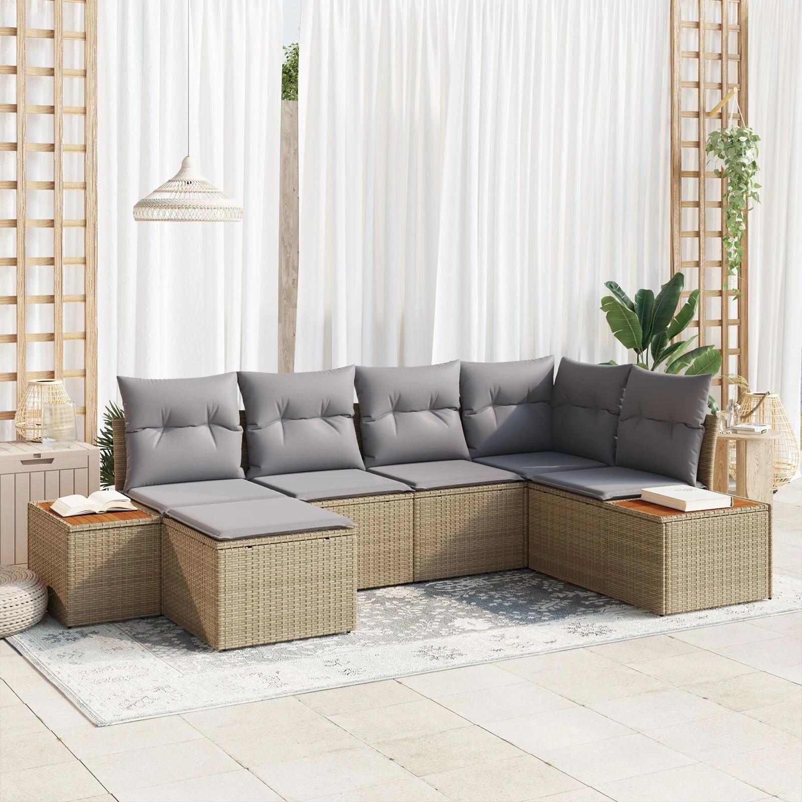 vidaXL Dārza dīvānu komplekts ar spilvenu 9 pcs Melna poliratāns