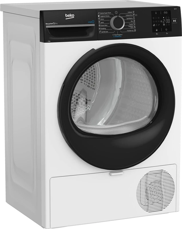 Zīmols- Beko. Modelis- BM3T38239WBB . Platums- 59.8 cm. Dziļums- 47 cm. Augstums- 84.6 cm. Krāsa- Balta. Svars- 39.5 kg. Ietilpība- 8 kg. Energoefektivitātes klase- D. Žāvēšanas veids- Kondensācija ar siltumsūkni. Gada enerģijas patēriņš- 220.2 kWh. Žāvēšanas efektivitātes klase- B. Programmu skaits- 15. Trokšņa līmenis- 64 - 64dB. Žāvēšanas programmas- Programmas: kokvilna, kokvilnas Eco Dry, sintētika, jaukti audumi (ikdienas režīms), dvieļi, āra/sporta apģērbs, atsvaidzināšana, laika programmas, maiga kopšana, gultasveļa, dūnu apģērbs, džinsi, krekli, higiēniskā žāvēšana, Xpress Super Short. Vadība- Elektroniska. Ekrāns- Jā. Obligātā garantija- 24 mēn.