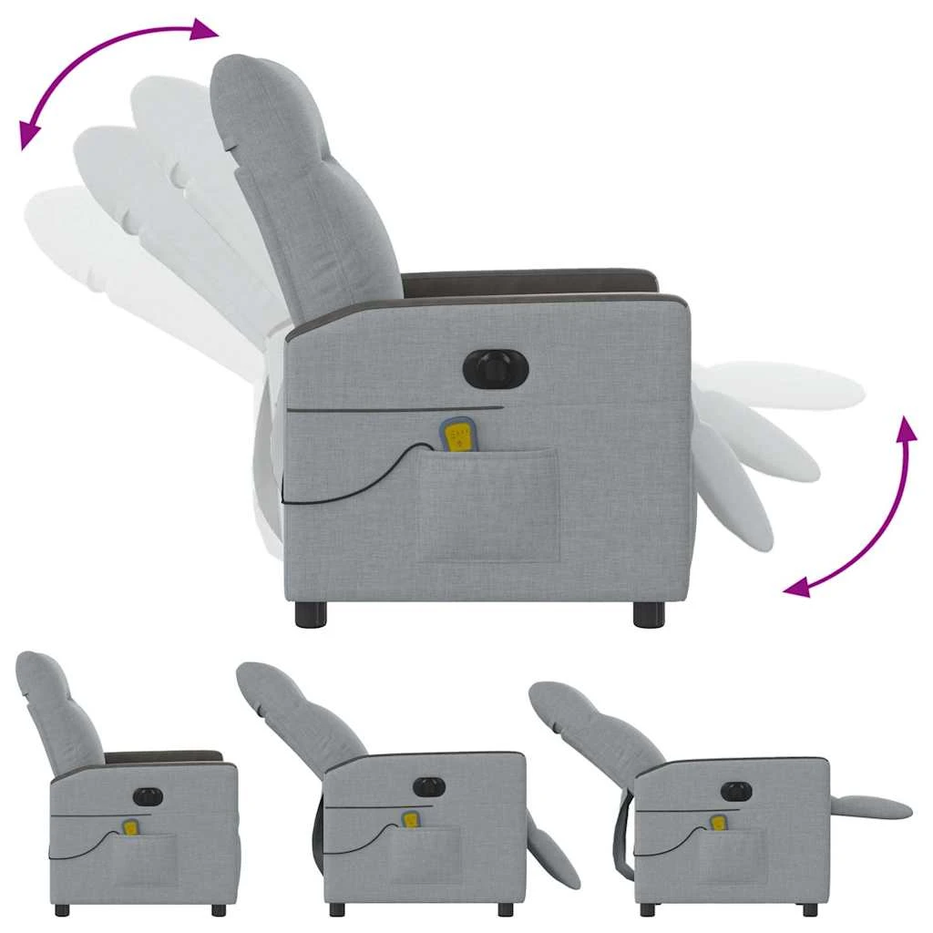 vidaXL elektrisks masāžas krēsls, atgāžams, gaiši pelēks audums