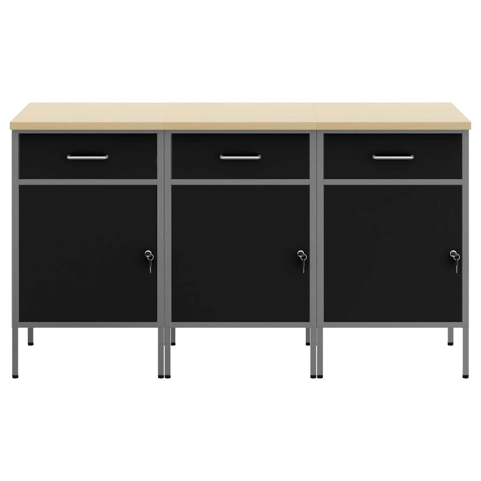 Šis mūsdienu darba skapis apvieno formu un funkciju, saglabājot izturīgu dizainu un industriālo stilu. Tas ir ideāli piemērots darbnīcām un izliekas tiešām eleganti. Konstrukcija izmanto koku un tēraudu un ir ideāli piemērota rīku organizēšanai un darba vides uzlabošanai, gan hobiju, gan profesionāliem lietotājiem.