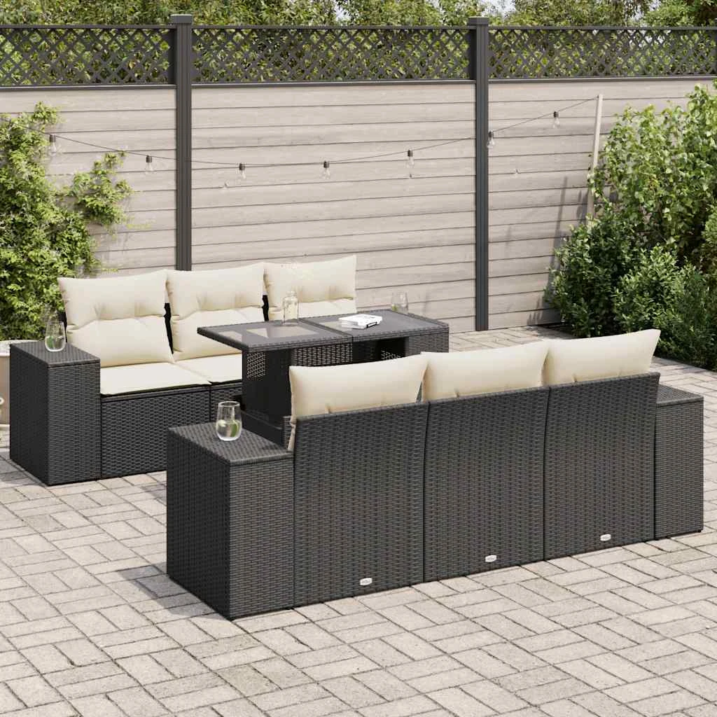 vidaXL 7-daļīgs dārza dīvāna komplekts ar matračiem, melna PE