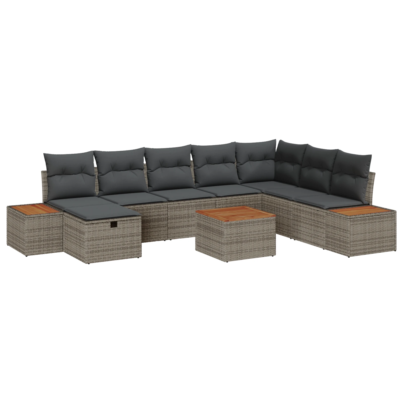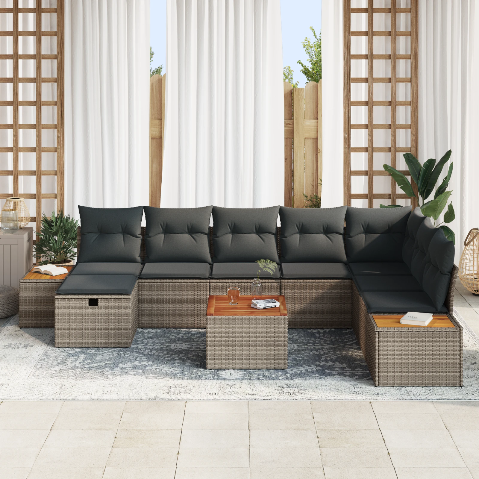 Šis modulārais dārza dīvānu komplekts apvieno modernu stilu ar vienkāršību un praktiskumu. Tas ir lieliski piemērots āra lietošanai, dārziem un terasēm. Tajā ir minimālisma izskats, kas piešķir eleganci un komfortu jebkurai situācijai. Komplektam ir elastīgas iespējas, kas ļauj jums pielāgot savu ārējo telpu atbilstoši jūsu vajadzībām - vai nu atpūtai, socializēšanai vai ģimenes pasākumiem.