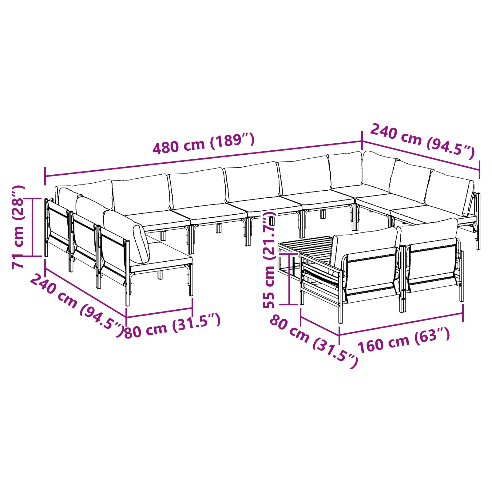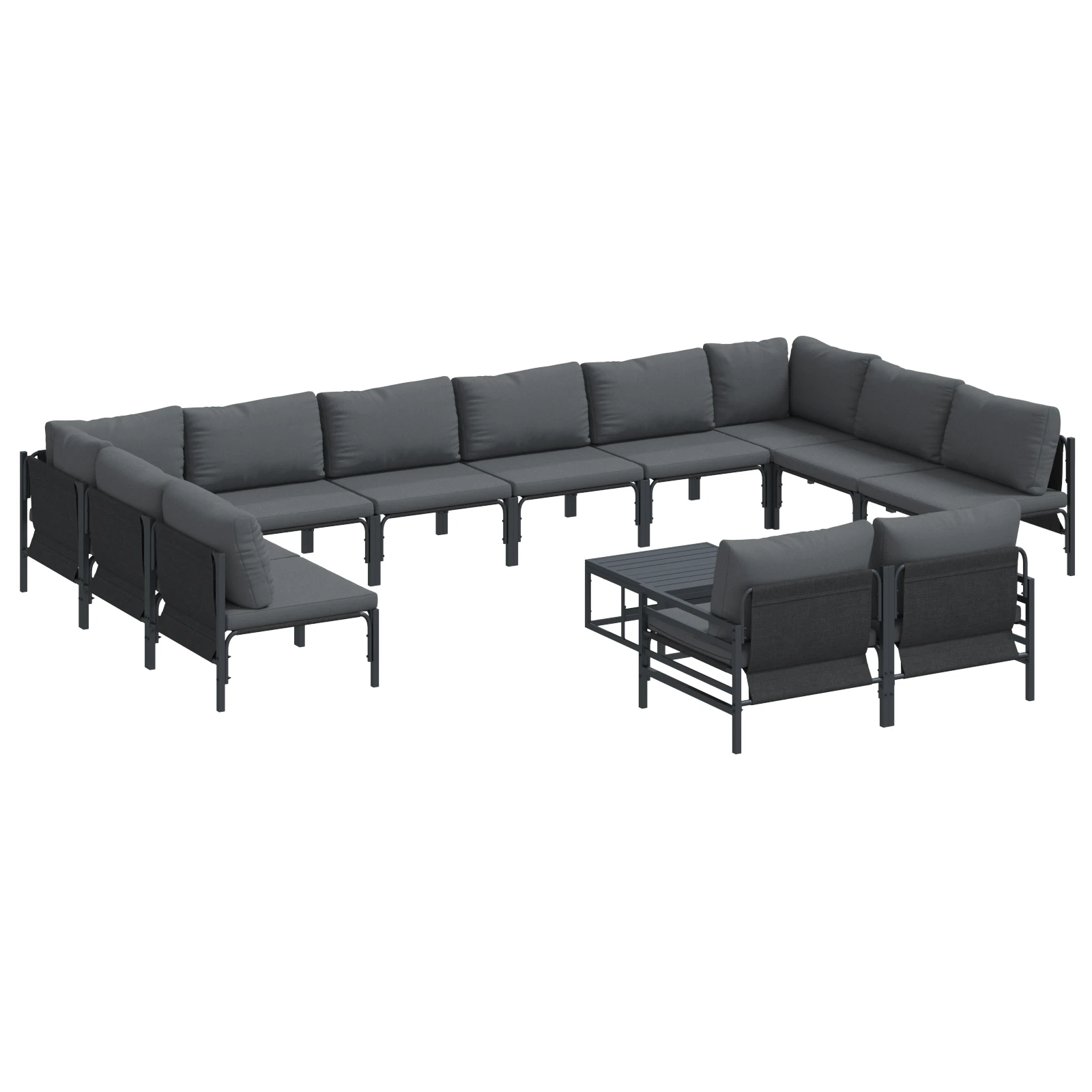 vidaXL 10-daļīgs dārza dīvāna komplekts ar matračiem, pelēks PE pinums
