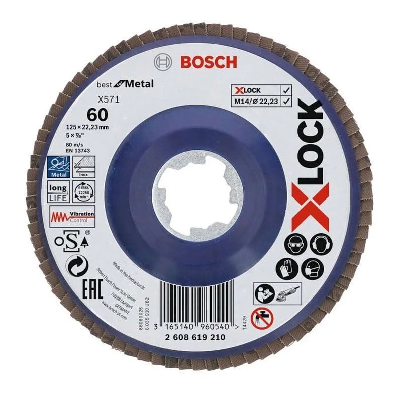 Zīmols- Bosch. Diametrs- 125 mm. Iekšējā cauruma diametrs- 22.23 mm. Materiāls- Bakelīts. Apstrādes materiāls- Metāla. Smalkums- 60 - 60. Maksimālais ātrums minūtē- 12250 rpm. Piemēroti rīki- Leņķveida smalcinātājs. Obligātā garantija- 24 mēn. Garantija juridiskām personām- 12 mēn.