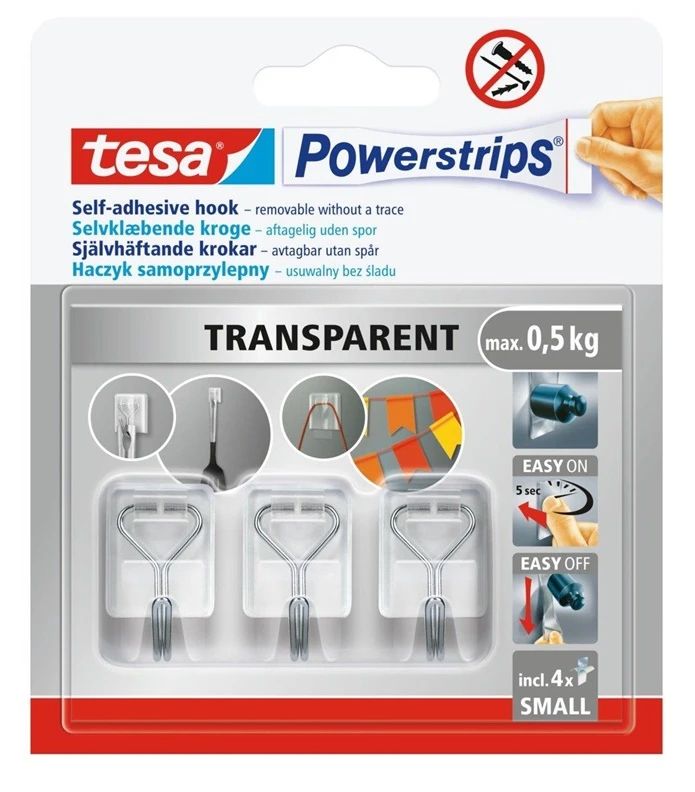 Zīmols- Tesa. Krāsa- Caurspīdīga. Materiāls- Plastmasa. Stiprinājuma veids- Pie sienas. Obligātā garantija- 24 mēn. Papildus informācija- Maksimālā slodze: 0.5kg.