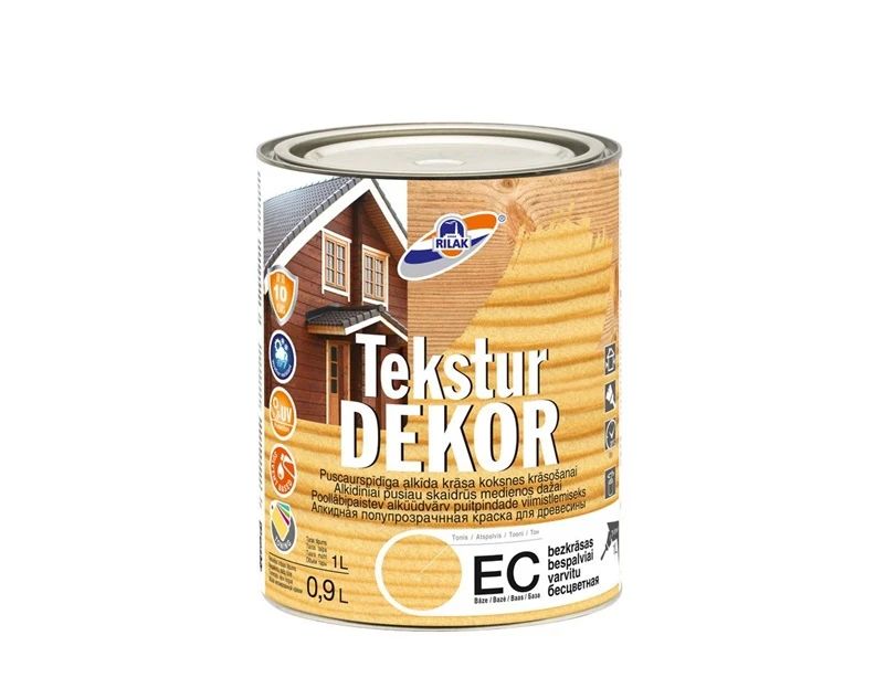 Zīmols- Rilak. Apdares darbiem- Āra. Iepakojuma daudzums. l- 0.9. Atšķaidītājs- Neatšķaidīt. Krāsa- Caurspīdīga. Patēriņš- 9-11 m²/l. Pilnīgi sausa pēc- 8 - 8h. Žūšanas laiks (pirms pieskaršanās)- 8 - 8h.