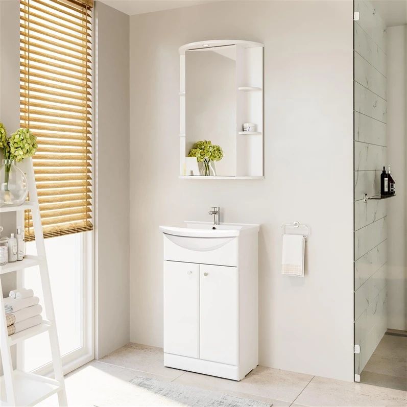 Zīmols- Riva. Artikuls- SV55-1. Dziļums- 24 cm. Platums- 55 cm. Augstums- 80 cm. Svars- 15 kg. Krāsa- Balta. Materiāls- Laminētas kokskaidu plāksnes (MDF). Vidēja blīvuma kokšķiedru plāksnes (MDF). Ar spoguli- Jā. Ar izlietni- Nē. Ar maisītāju- Nē. Komplekts- Skapītis. Obligātā garantija- 24 mēn. Papildus informācija- Jūsu ērtībai mēbeles tiek piegādātas jau samontētas. Komplektā ir iekļauti piederumi (skrūves un pakaramie) mēbeļu piestiprināšanai pie sienas..