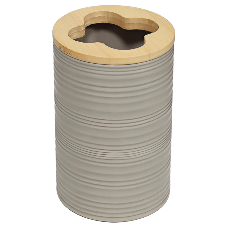 Universālā Zinda vannas istabas glāze ir elegants un praktisks aksesuārs jūsu vannas istabai. Izgatavota no izturīga polipropilēna materiāla bēšā krāsā ar dekoratīvu viļņotu tekstūru, tā piešķir telpai modernu un sakārtotu izskatu. Glāzes augšdaļu rotā dabīgs bambusa vāciņš ar izgriezumu zobu birstes ievietošanai, kas nodrošina higiēnisku un ērtu uzglabāšanu. Šis daudzfunkcionālais aksesuārs ir ideāli piemērots ne tikai zobu birstēm, bet arī citiem vannas istabas piederumiem, apvienojot funkcionalitāti ar estētisku dizainu.