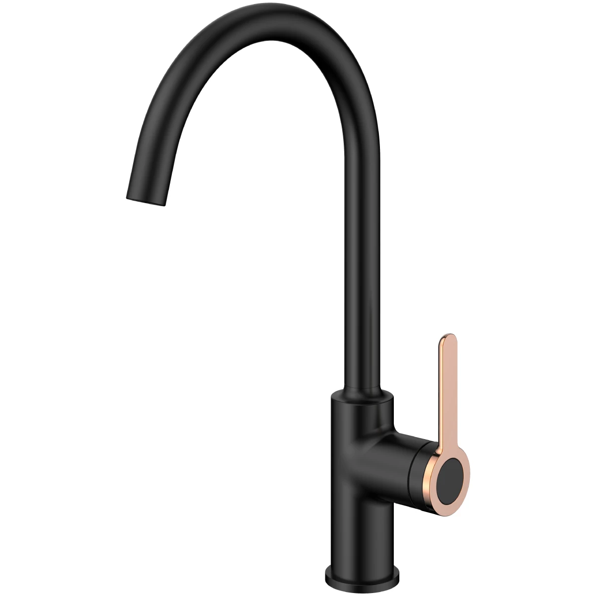 Virtuves jaucējkrāns AB AMBER melnā un zelta krāsas salikumā piešķir virtuvei izteiksmīgu un modernu akcentu, apvienojot dizainu ar funkcionalitāti. Augstais, grozāmais snīpis nodrošina ērtu piekļuvi izlietnei un atvieglo lielāku trauku mazgāšanu, savukārt vienas sviras vadība ļauj viegli kontrolēt ūdens temperatūru un spiedienu. Krāns ir piemērots montāžai uz izlietnes vai darba virsmas ar standarta montāžas atveri, nodrošinot ātru uzstādīšanu. Pārklājuma noturība pret nodilumu un vieglā kopšana padara šo modeli ideāli piemērotu ikdienas lietošanai. Eleganta izvēle industriālā vai moderna luksusa stila virtuvēm.