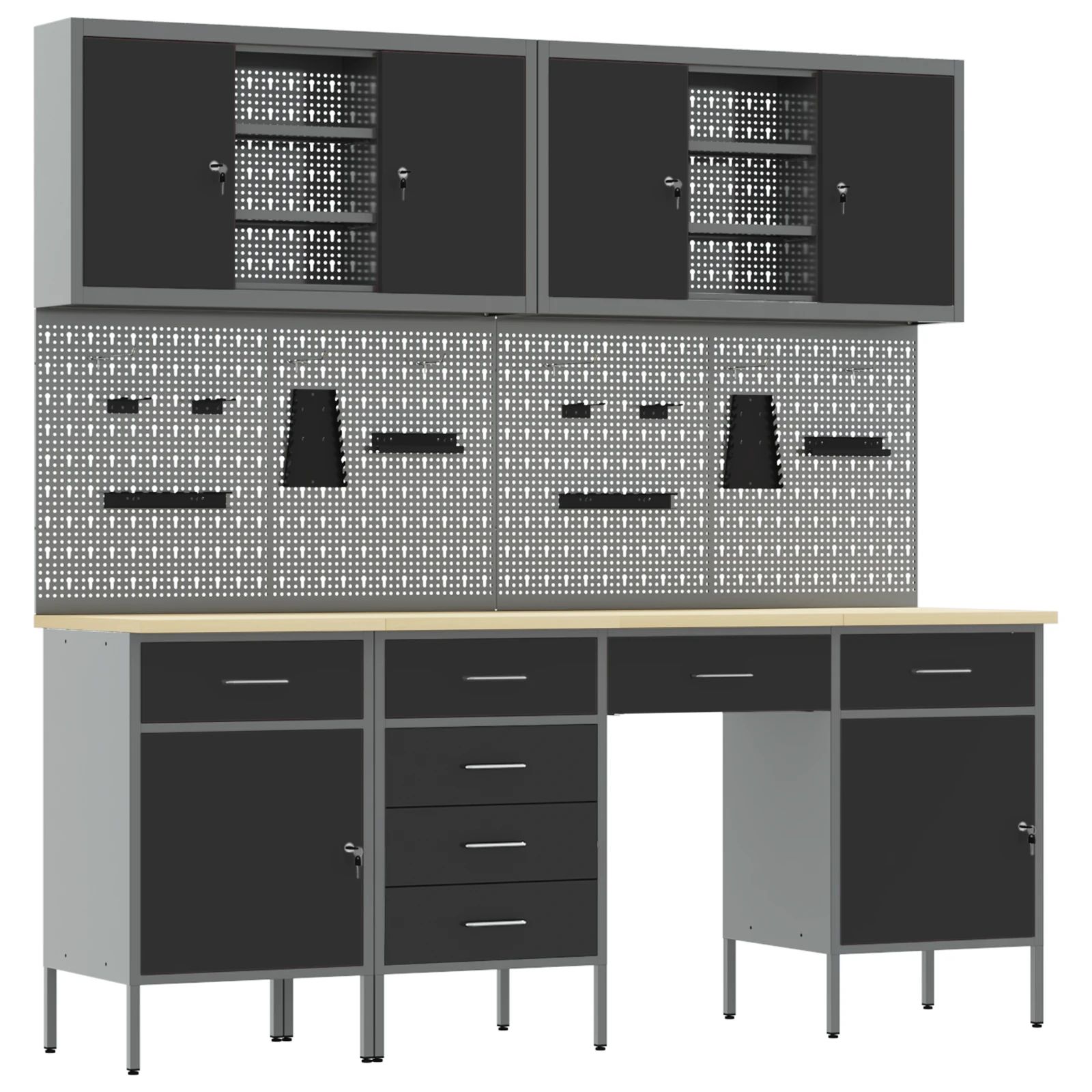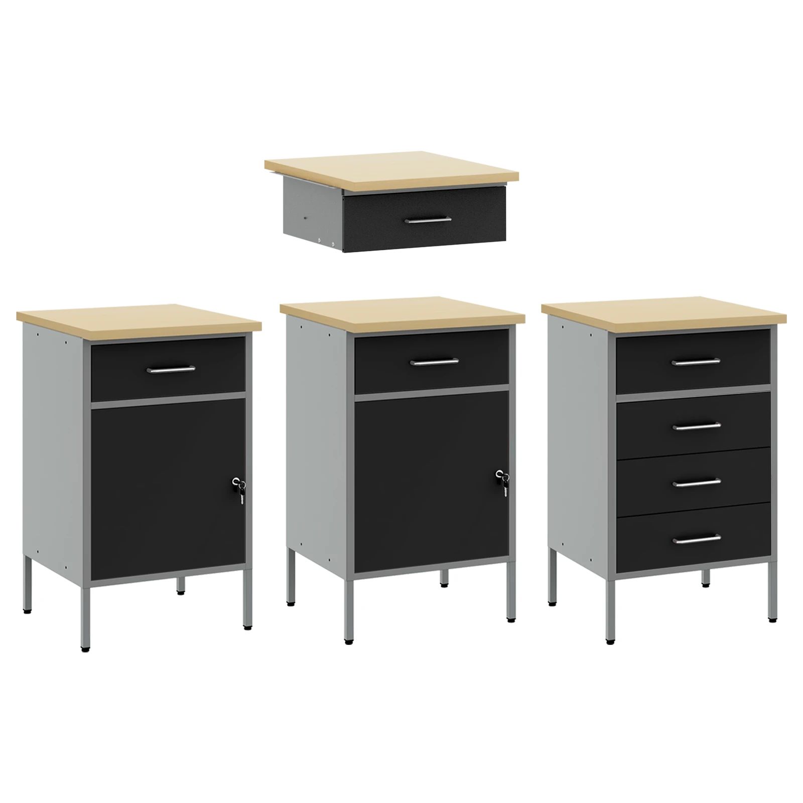 vidaXL Rīku skapju komplekts ar plauktu ar uzglabāšanu 3 pcs Melna