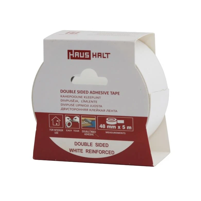 Zīmols- Haushalt. Garums- 5 m. Platums- 48 mm. Krāsa- Balta. Pašlīmējošas lentes tips- Divpusējs.