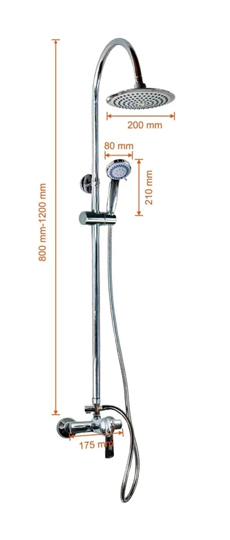 Zīmols- Thema Lux. Modelis- CD-18004. Krāsa- Sudraba. Svars- 4.1 kg. Materiāls- Nerūsējošais tērauds. Ar vannas maisītāju- Jā. Ar dušas galvu- Jā. Ar dušas šļūteni- Jā. Dušas galvas diametrs- 80 mm. Dušas plaukta garums- 700 - 1100mm. Dušas galvas režīmu skaits- 3. Komplekts- Dušas stienis. 2x dušas galvas. Dušas galvas turētājs. Šļūtene. Šļūtenes garums- 1.5 m. Taupīšanas funkcija- Nē. Obligātā garantija- 24 mēn. Papildus informācija- Regulējams caurules garums: 70-110 cm. Komplektā: Dušas caurule. 2 dušas galviņas. Dušas galviņas turētājs. Caurlaidība - 8l/min. Lietus galvas diametrs - 20 cm..