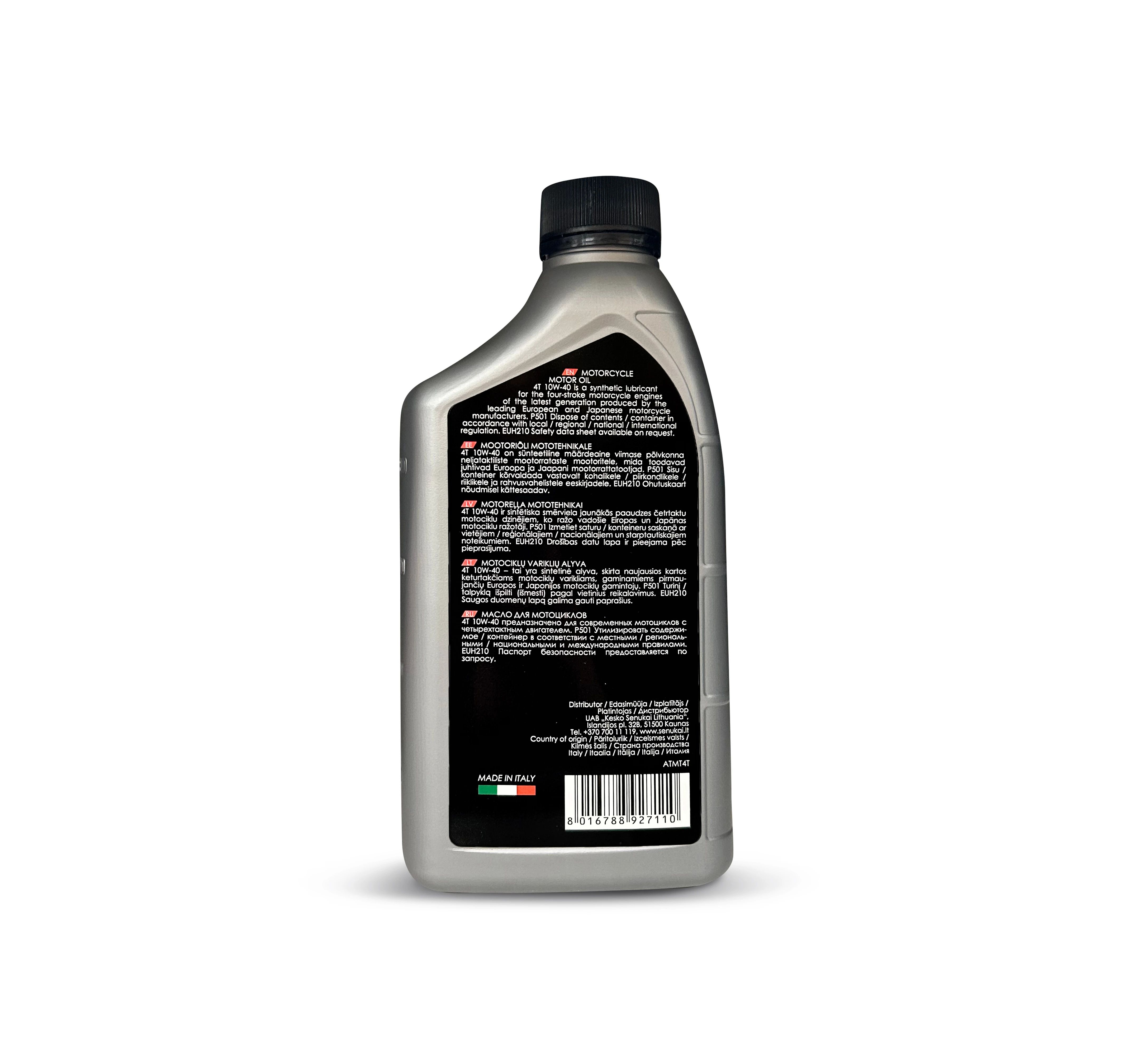 Zīmols- Autoserio. Eļļas tips- Sintētiskais. Dzinēja veids- Ar benzīna dzinēju. Eļļas mērķis- Mototehnikai. Eļļas viskozitāte- 10W - 40. Tilpums- 1 l.