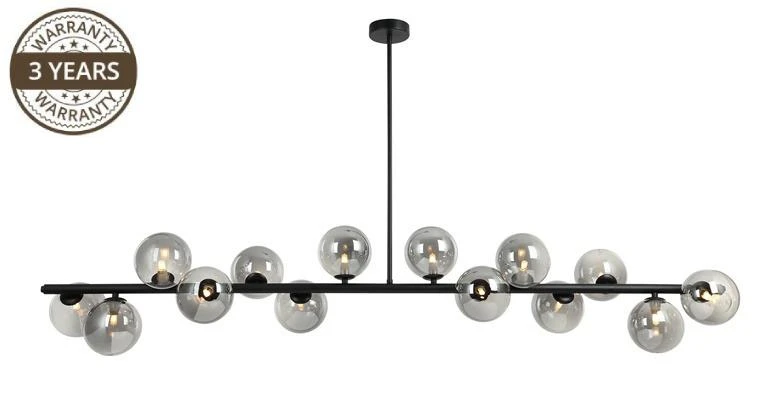 Preces tips- Lukturis. Modelis- H1250-14. Artikuls- -. Piemērots telpai- Darba istaba. Birojs. Priekštelpa. Bērnu istaba. Guļamistaba. Viesistaba. Virtuve. Stils- Mūsdienīgs. Lukturis tips- Pakaramais. Montāžas tips- Piestiprināms pie griestiem. Spuldzes ligzda- G9. Maksimālā jauda- 126 W. Maksimālā spuldzes jauda- 9 W. Spuldzes komplektā- Nē. Spuldžu skaits- 14. Aizsardzības pakāpe (IP)- IP20. Obligātā garantija- 24 mēn. Ar tālvadības pulti- Nē. Spriegums- 220 - 240V. Preču zīme- Domoletti. Garums- 152 - 152cm. Platums- 26.5 - 26.5cm. Augstums- 140 - 140cm. Gaismas ēnas krāsa- Melna. Korpusa materiāls- Metāls. Gaismas ēnas materiāls- Caurspīdīgs stikls. Korpusa krāsa- Melna.
