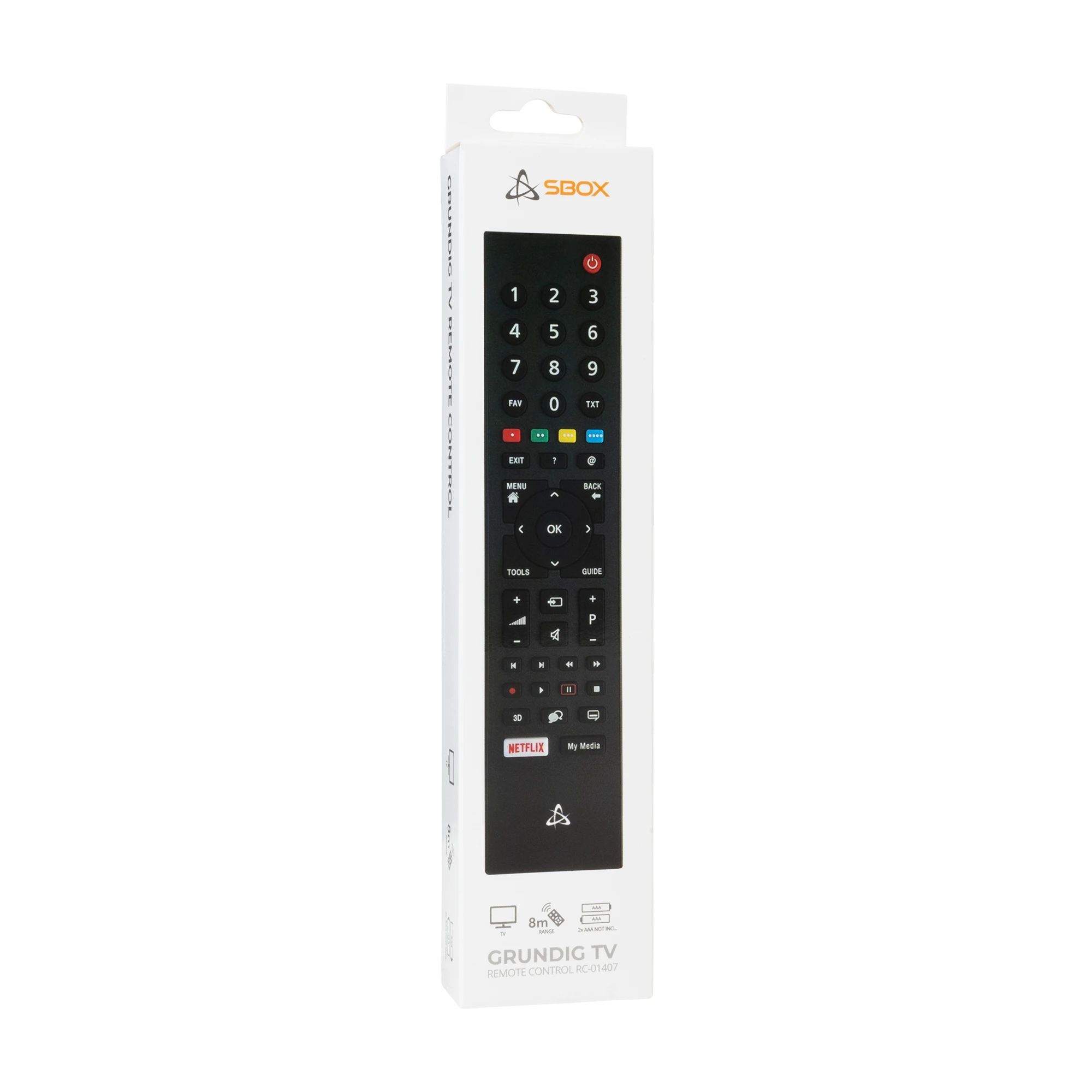 Kontrolējiet savu Grundig televizoru ar SBOX RC-01407 rezerves tālvadības pulti. Radīta Grundig televizoriem, tā nodrošina nevainojamu savietojamību. Vienkārši ievietojiet 2 AAA baterijas (nav iekļautas komplektā), un jums būs 8 metru darbības attālums, lai ērtāk pārvaldītu televizoru. Atklājiet ērtības prieku ar RC-01407.