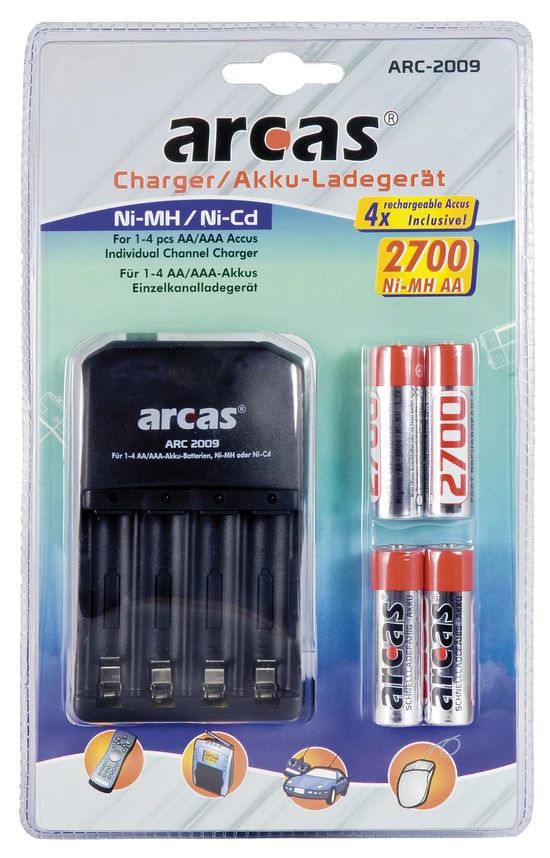Zīmols- Arcas. Piemērots akumulatoriem- AAA lielums, AA lielums. Komplekts- Lādētājs, 4 AA baterijas. Spriegums- 230 - 230V. Obligātā garantija- 24 mēn.