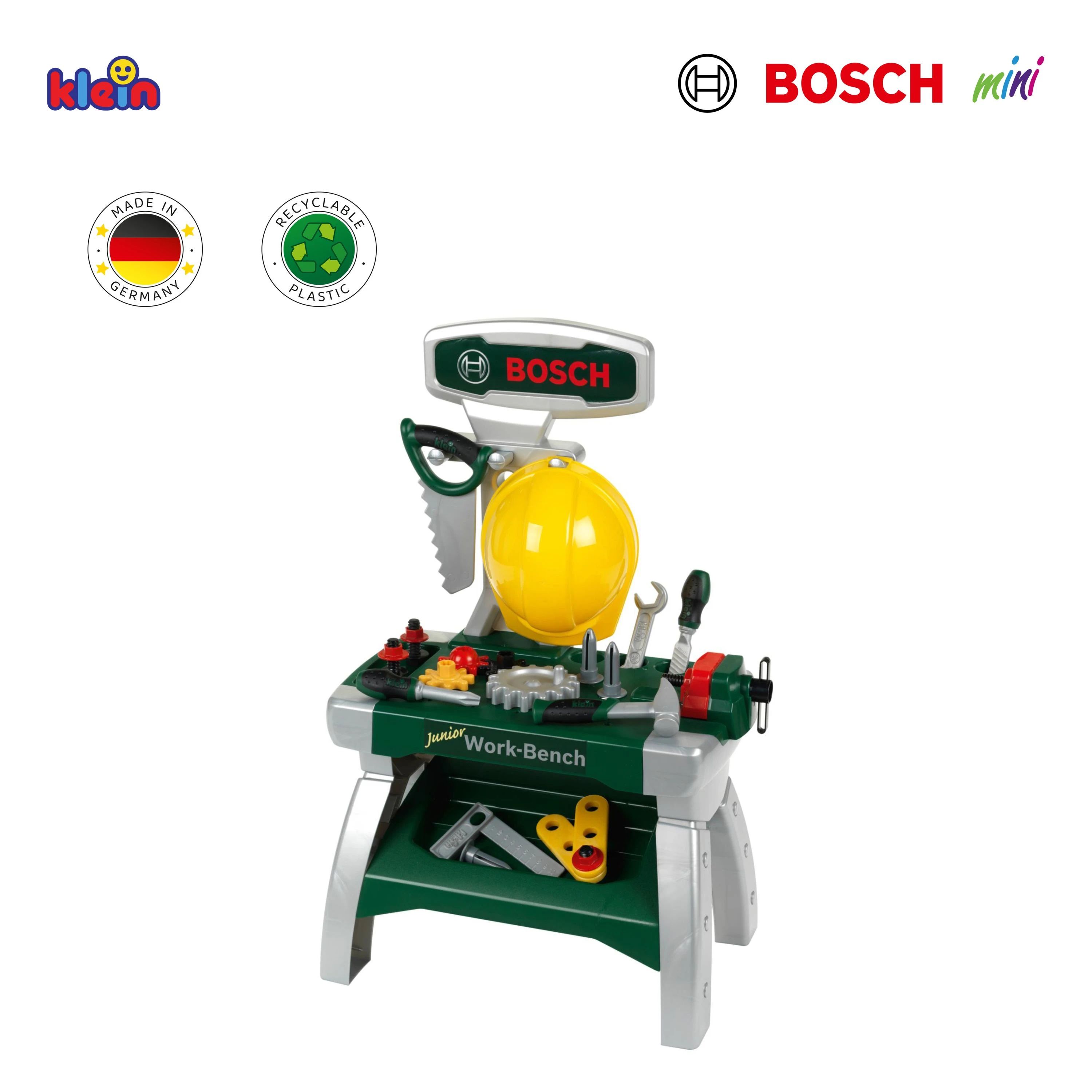 Bosch dizaina darba galds piedāvā plašu instrumentu un rotaļu iespēju klāstu – pat ļoti jaunajiem meistariem. Komplektā ķivere un rotaļu instrumenti, piemēram, skrūvgriezis, atslēga, vīle, āmurs, zāģis un daudz kas cits. Darba virsma ar mācību funkciju, tvisks un dažādi uzglabāšanas risinājumi iedvesmo bērnus spēlēt un eksperimentēt. Ar šo darba galdu bērni jau no agras vecuma var droši izmantot instrumentus, attīstot roku prasmes un iztēli spēles laikā. Patiesi foršs darba galds, kas sniedz daudz prieka, ražots Vācijā, izmēri 49 × 29 × 71 cm, piemērots bērniem no 2 gadiem.